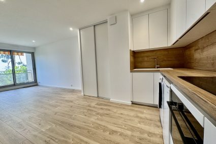 Le studio, d’une surface de 28,47 m², a fait l’objet d’une rénovation complète aux finitions soignées. Il se compose d’une pièce de vie lumineuse avec cuisine moderne et équipée, d’une salle d’eau contemporaine et de rangements optimisés.