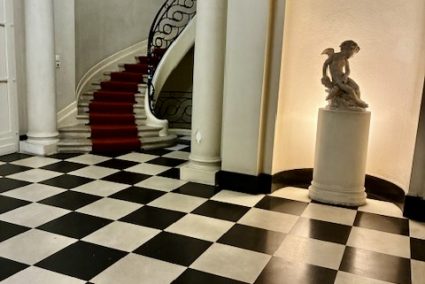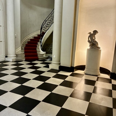 Une belle entrée distribue les pièces de réception, baignées de lumière grâce à leurs trois grandes portes-fenêtres; elles incarnent l’élégance classique bordelaise avec leur parquet en point de Hongrie d’origine, leurs cheminées en marbre et leur belle hauteur sous plafond.